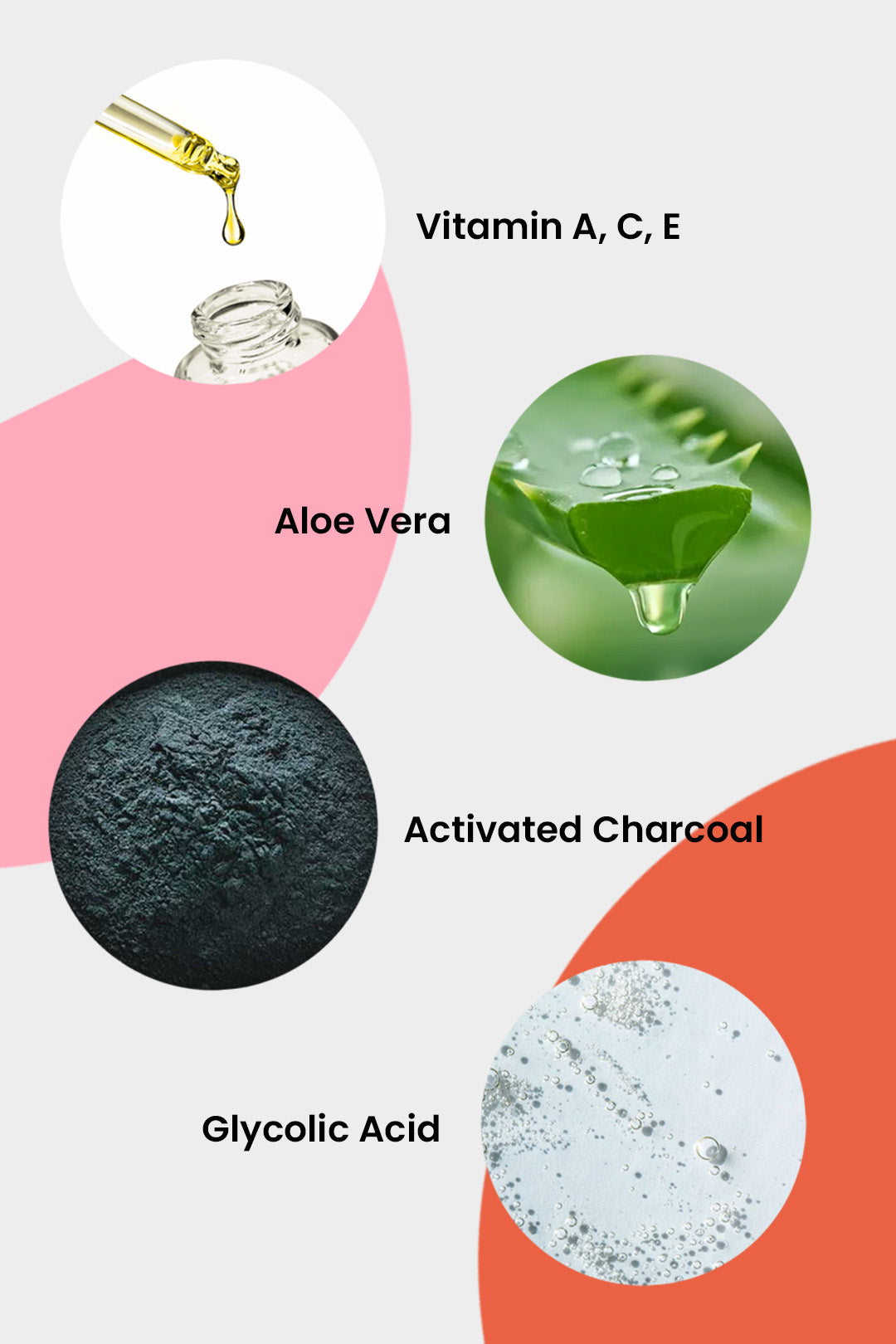 Aqua, Glycerin, Phenoxyethanol, Polyglyceryl-4 Caprate, Capryl/Capryl Glucoside, Sodium Benzoate, Polysorbate 20, Ethylhexylglycerin, Benzoic Acid, Sodium Citrate, Dehydroacetic Acid, Butylene Glycol, Bisabolol, Parfum, 3-0-ethyl Ascorbic Acid, Tocopheryl Acetate, Citric Acid, Glycolic  Acid, Charcoal (Bamboo) Powder, Retinyl Palmitate, Aloe Barbadensis Leaf Extract.